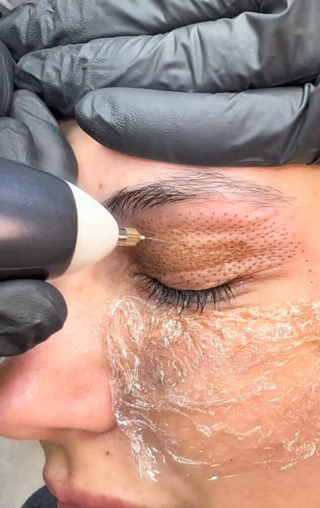 ✅ Aplicación de la técnica de fulguración: generación precisa de microlesiones para estimular la regeneración de la piel.